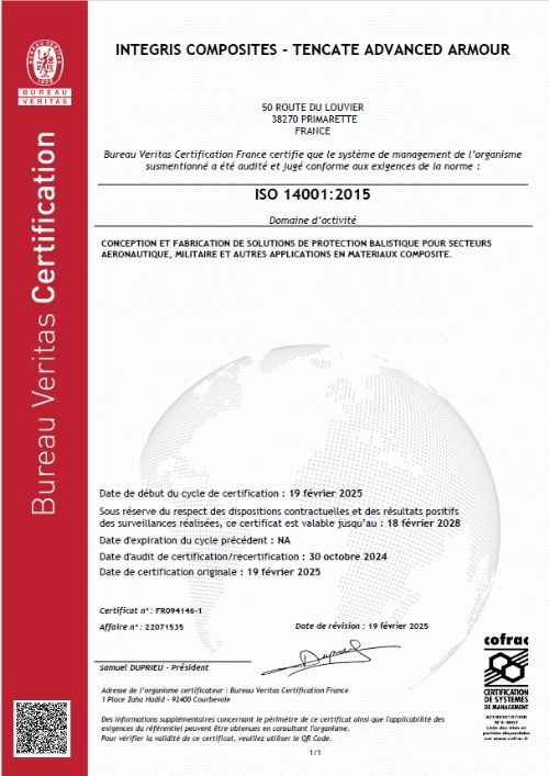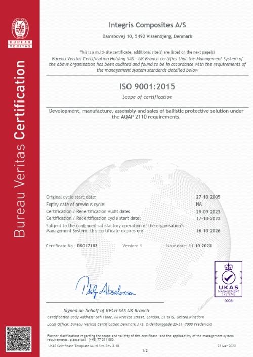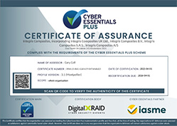 The Integris Composites quality management system is certified in accordance with ISO9001 & EN/AS9100.